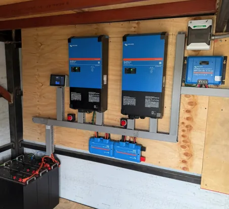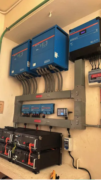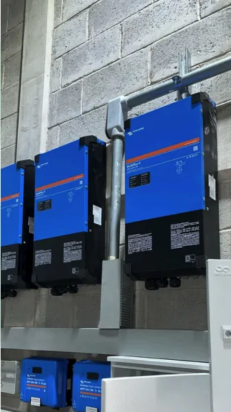Solución de respaldo energético con integración de inversores y robusto banco de baterías para continuidad operativa ininterrumpida.