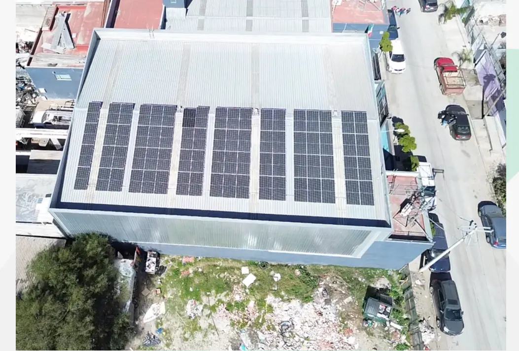 Sistema fotovoltaico interconectado a CFE con una reducción estimada de hasta 95% en el consumo eléctrico.