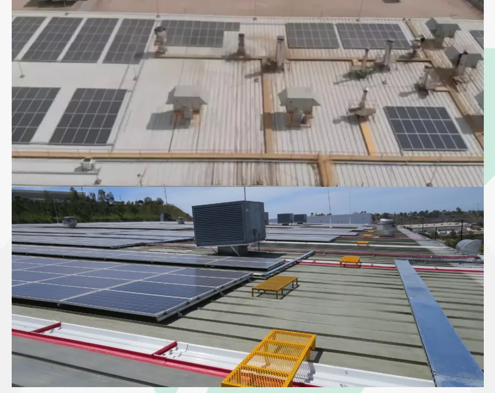 Arquitectura energética adaptada eficientemente a la techumbre comercial para garantizar funcionamiento seguro a largo plazo.